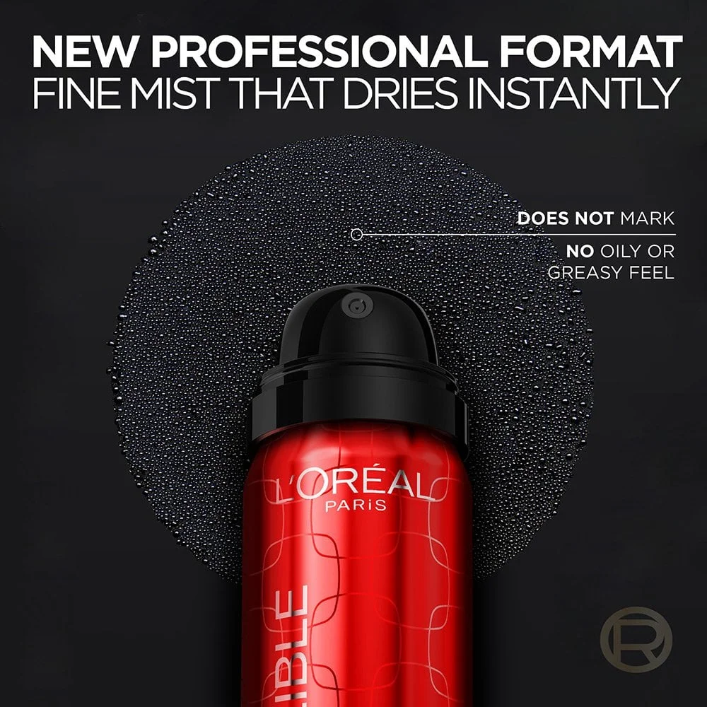 L'Oreal Paris Infallible 3- Second Liquid Setting Mist with microfine, up to 36H wear, Clear, 1.76 fl oz. Discover Infallible 3-Second Setting Mist by L'Oreal Paris with microfine mist for up to 36H wear in just one spray. New professional-inspired aerosol format that instantly dries. Lightweight and breathable on skin. Up to 36H transfer-resistant wear. Sweat and smudge resistant. Makeup stays put all day. Spray in a circular motion, 12 inches away from your face for 3 to 4 seconds for an easy and even application. Provides a natural finish. Spray does not leave a white cast, settle into imperfections, mark, or cake. Prevents makeup from cracking and flaking. Do not intentionally inhale.