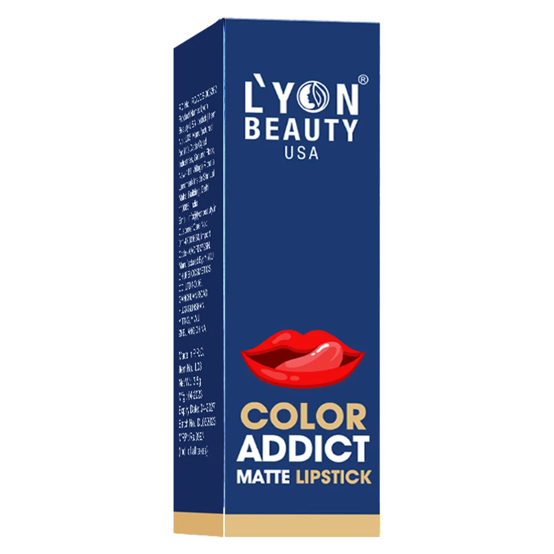 Lyon Beauty Color Addict Matte Lipstick is here to give you luxurious matte lips and unleash the power of long stay. Just one stroke is all it takes to cover your lips with high impact color. The iconic weightless formula feels feathery light on the lips and is comfortable for all day wear.